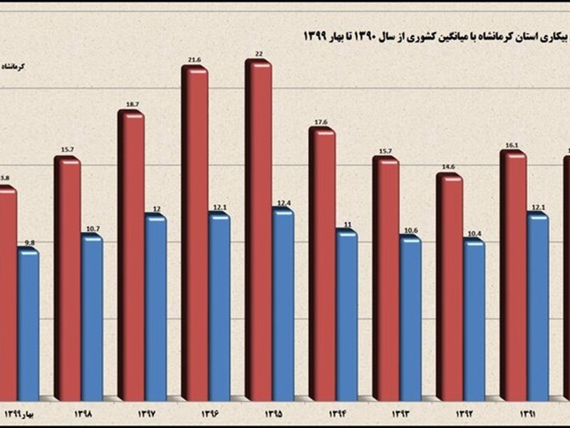 استان کرمانشاه در دهه اخیر همواره جز سه استان بیکار کشور بوده است اما در بهار ۹۹ در رتبه سوم استان های بیکار قرار گرفت و فاصله خود را از استان های اول و دوم زیاد کرد.