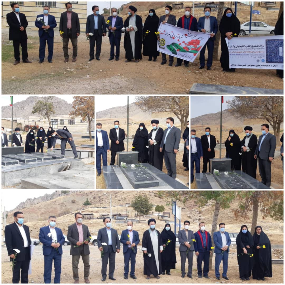 عطرافشانی و غبارروبی مزار شهدا صبح روز دوشنبه ۲۴-۸-۱۴۰۰ به مناسبت بیست و نهمین دوره هفته کتاب جمهوری اسلامي ايران مراسم...