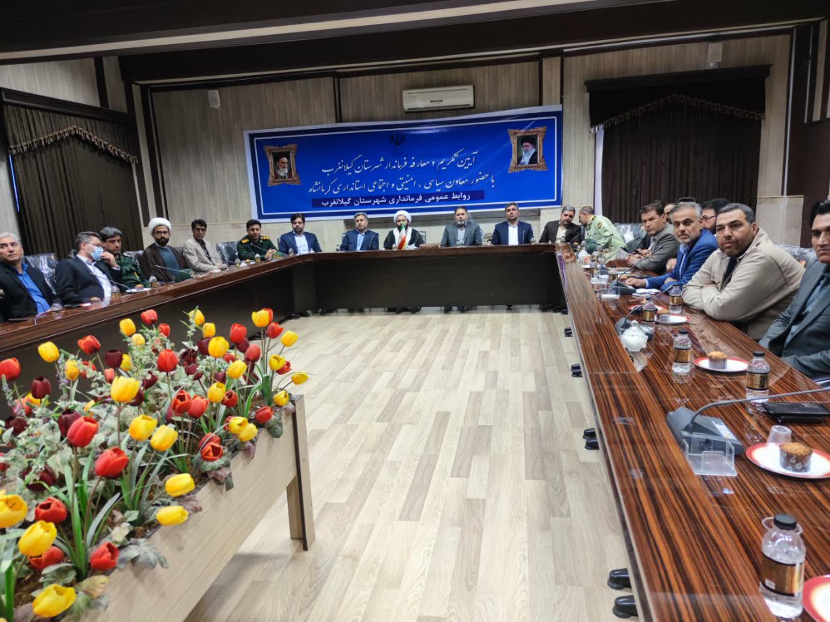 مراسم تودیع و معارفه فرماندار شهرستان گیلانغرب باحضور دکتر شعبانی معاونت سیاسی ،امنیتی و اجتماعی استانداری،امام جمعه شهرستان ، مدیر کل راوبط عمومی و...