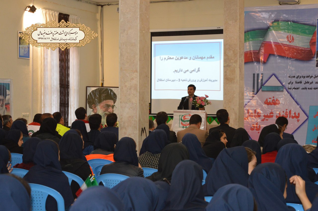 به مناسبت بزرگداشت هفته پدافند غیر عامل صبح روز دوشنبه مراسم باشکوهی در محل دبیرستان دخترانه استقلال ناحیه سه کرمانشاه برگزار گردید .