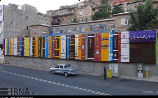 به منظور ترویج فرهنگ کتابخوانی ماکتی از یک قفسه کتاب بر روی دیوار دبستان محمد زاهد ضيايي شهر پاوه تعبیه شد.