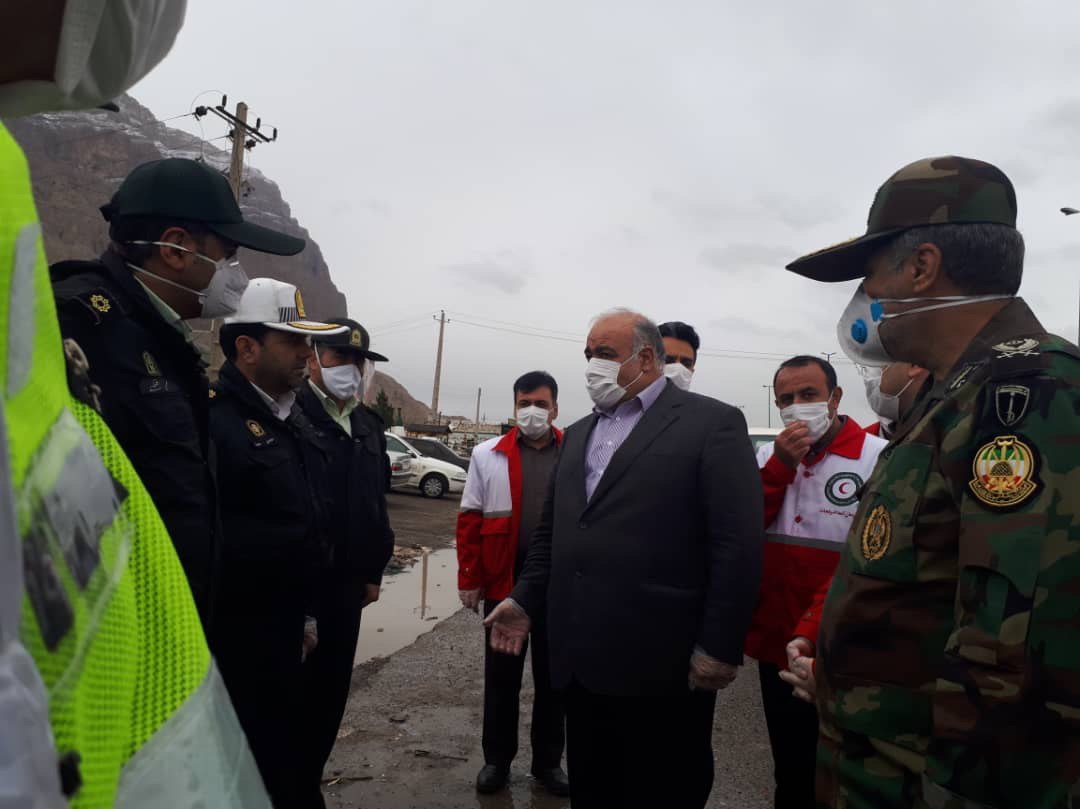 بازديد استاندار كرمانشاه از روند اجراي طرح فاصله گذاري اجتماعي در مبادي ورودي كرمانشاه