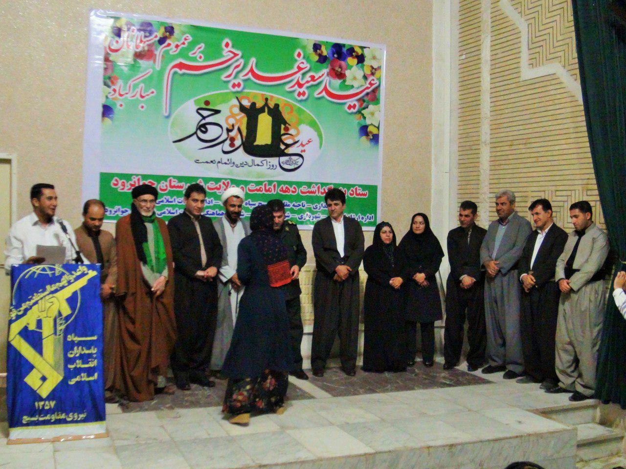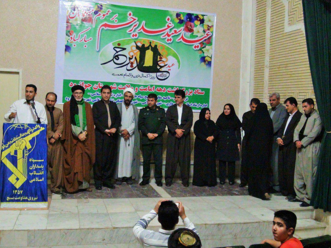 آیین جشن غدیر خم با حضور اقشارمختلف مردم ومسئولان در مجتمع فرهنگی هنری شهرستان جوانرودبرگزارشد.