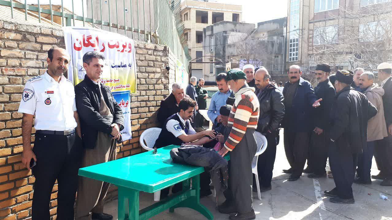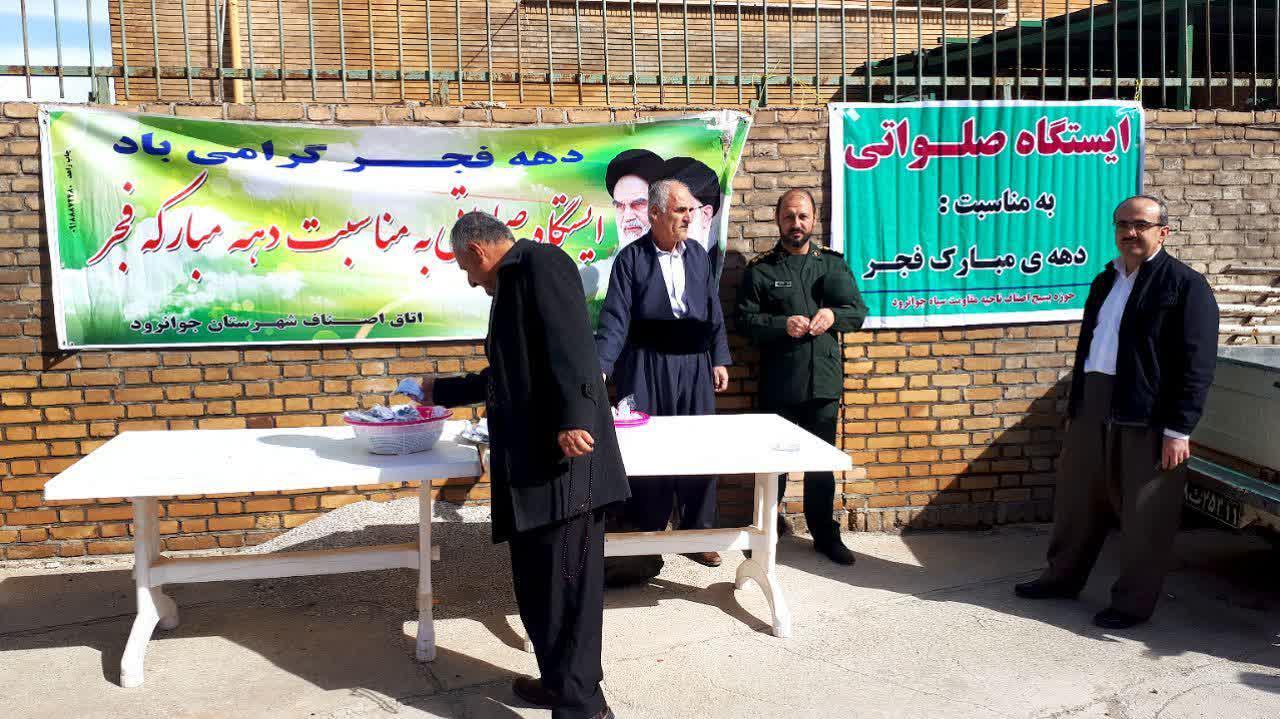 همچنین در این روز توسط اطاق اصناف وحوزه کارمندی ناحیه مقاومت سپاه جوانرود در ورودی شهرومسجد جامع نقل وشیرینی پخش شد همچنین با همکاری شبکه بهداشت ودرمان وبهداری ناحیه ویزیت رایگان وتست فشارخون در ورودی مسجد جامع برای نمازگزاران برپاشد .