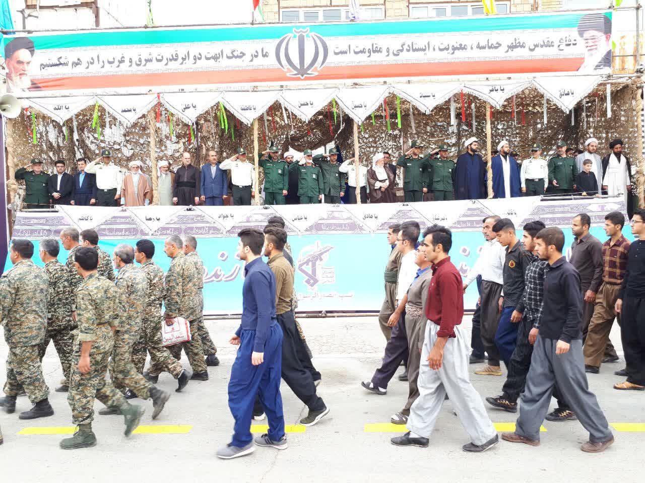مراسم رژه نیروهای مسلح شهرستان های اورامانات درجوانرود برگزارشد