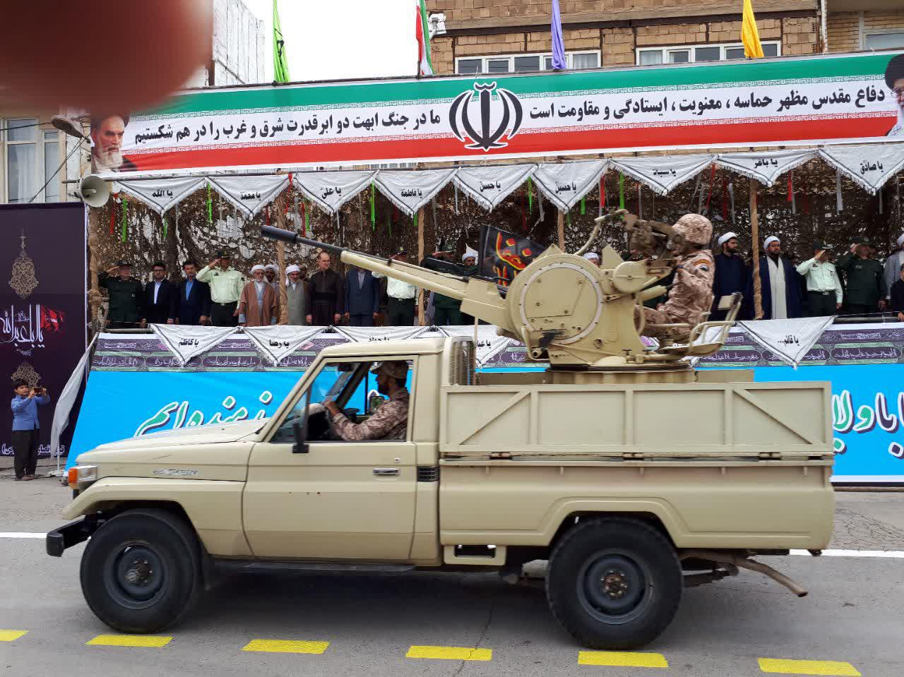 همچنین یگان های منتخب موتوری، خودرویی و پیاده نیروهای مسلح از مقابل قرآن کریم و جایگاه رژه رفتند.