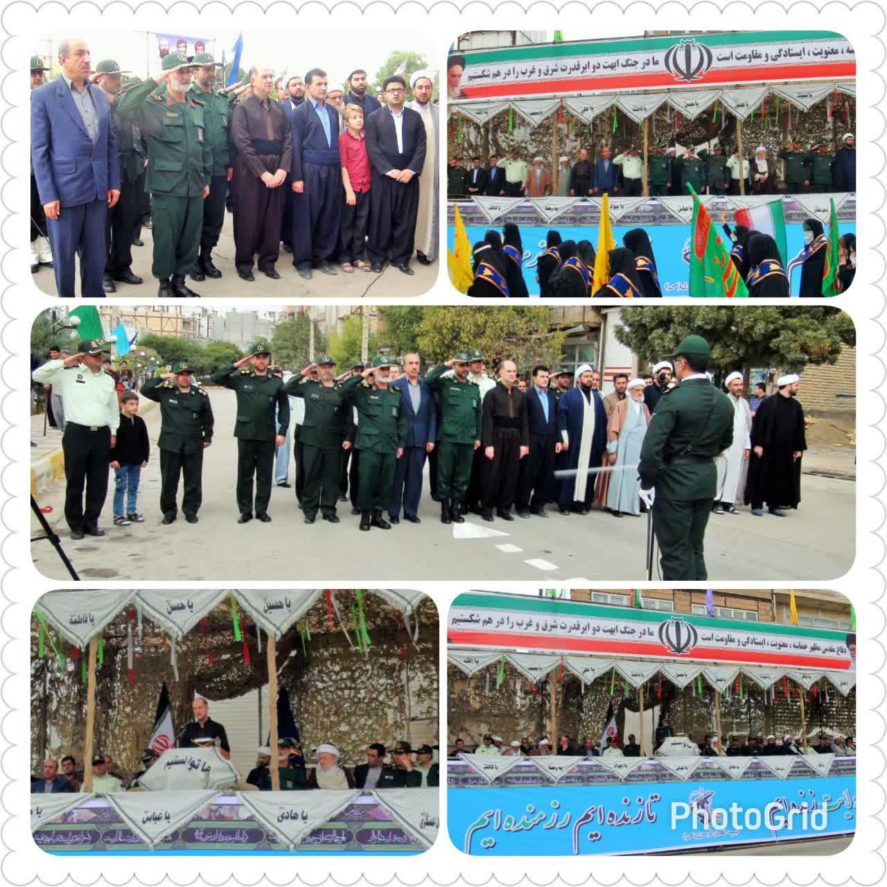 در نخستین روز از هفته دفاع مقدس نیروهای نظامی، انتظامی و بسیج منطقه اورامانات با برگزاری مراسم رژه، یاد رزمندگان و شهدای هشت سال دفاع مقدس را گرامی داشتند.