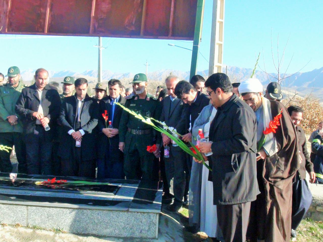 این آیین که با حضور مسئولان ، بسیجیان ، خانواده های معظم شهدا ، نیروهای نظامی وانتظامی برگزارشد، حاضران ضمن قرائت فاتحه به مقام شامخ شهدا ادای احترام کردند.