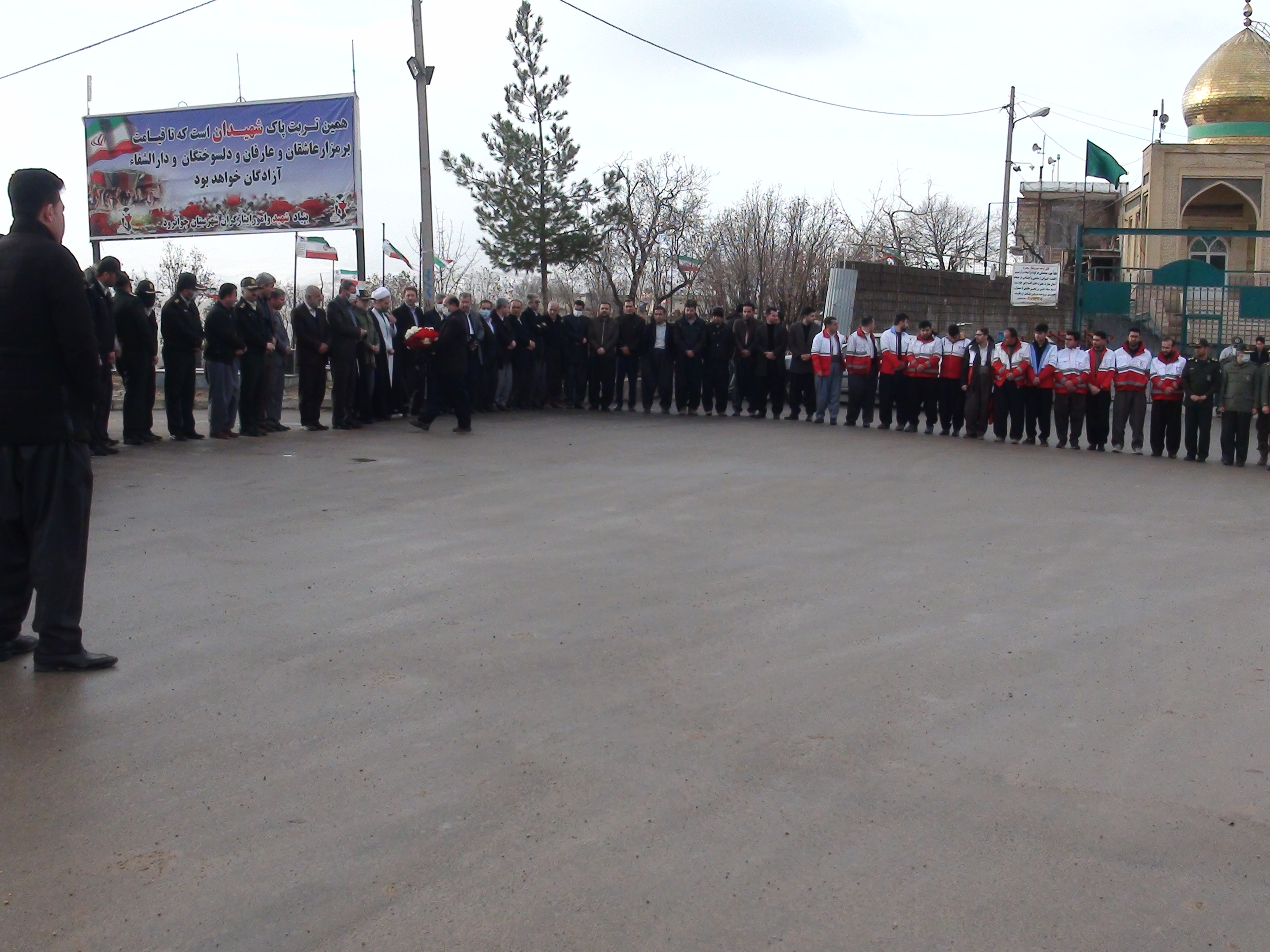در این مراسم حاضران ضمن قرائت فاتحه به مقام شامخ شهدا ادای احترام كردند.