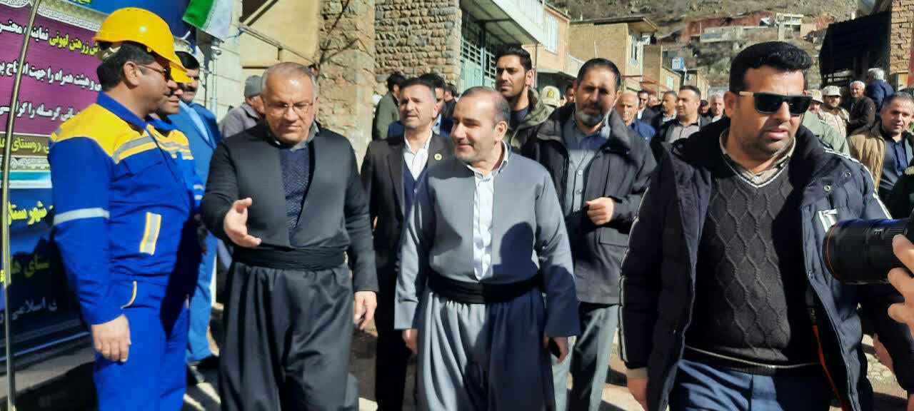 مشعل گاز روستاهای محور هانه گرمله (هانه گرمله، کیمنه و بیرواس، دزآور و کمدره و نجار با حضور استاندار کرمانشاه و فرماندار پاوه با لباس زیبای کوردی و با...