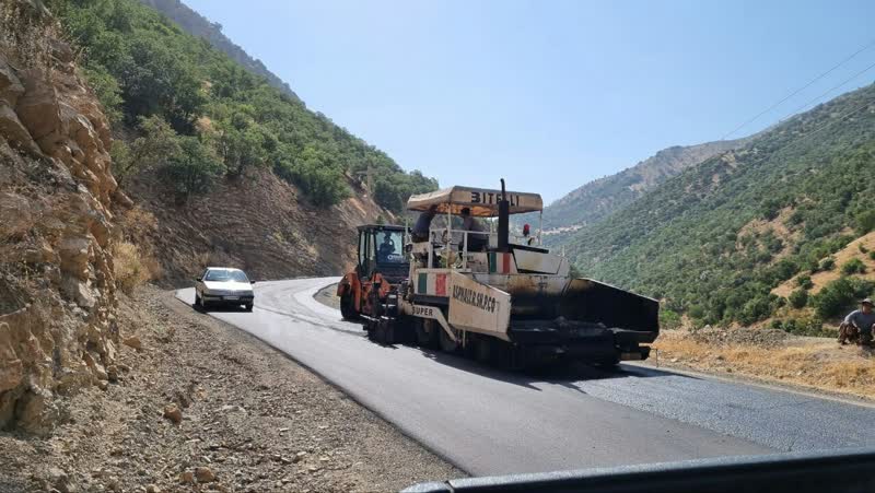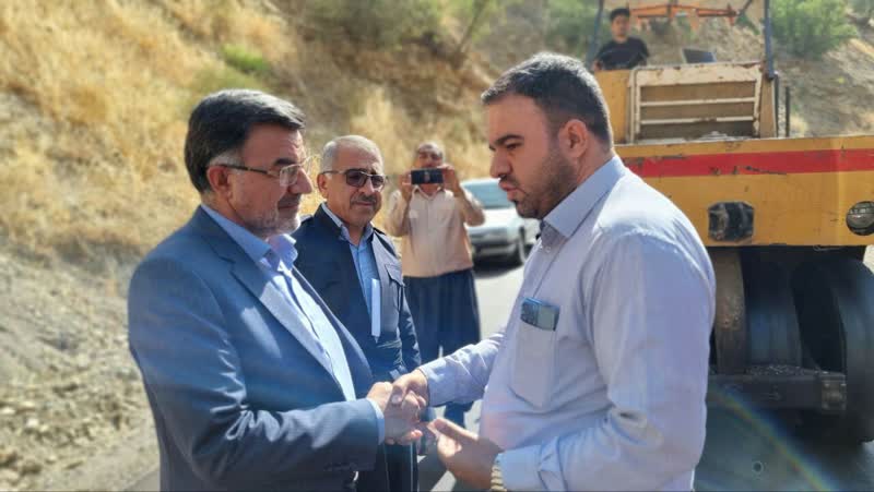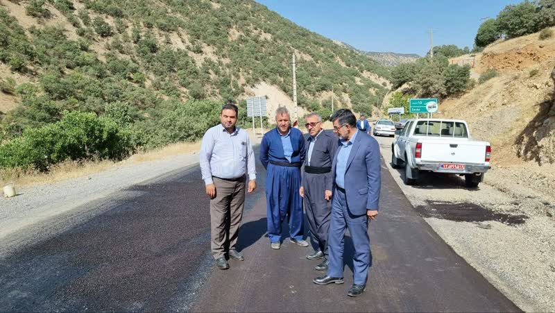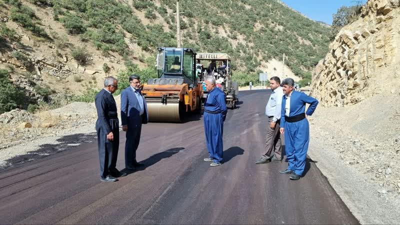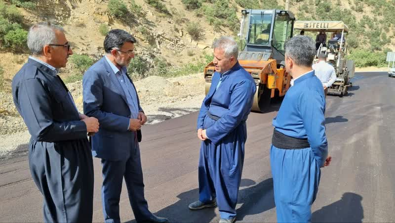 بازدید فرماندار پاوه از عملیات اجرای روکش آسفالت جاده باینگان/ ۴ کیلومتر جاده باینگان آسفالت شد