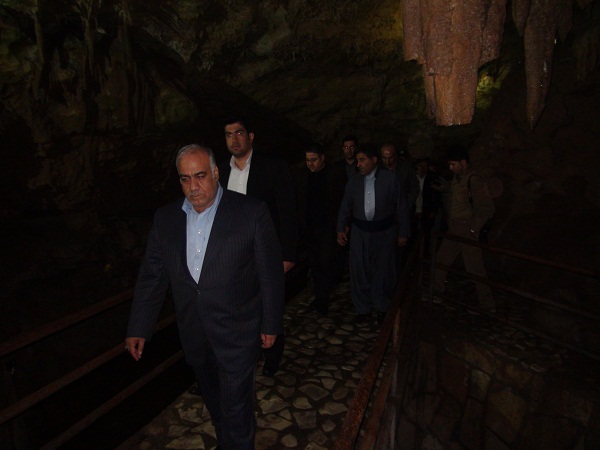 هوشنگ بازوند استاندار کرمانشاه به همراه جمعی از مدیران استانی و شهرستانی از مجموعه تفریحی توریستی غار قوری قلعه بازدید کرد