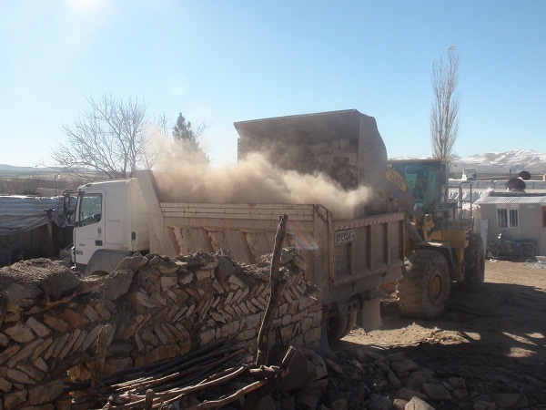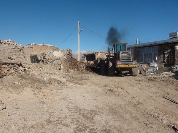 بازدید فرماندار و جمعی از مسئولین شهرستان از روستای زلزله زده خانم آباد و بررسی روند آوار برداری در این روستا