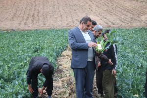 بازدید خدادادی فرماندار شهرستان ثلاث باباجانی از مزرعه کلم در روستای حوض شیخ