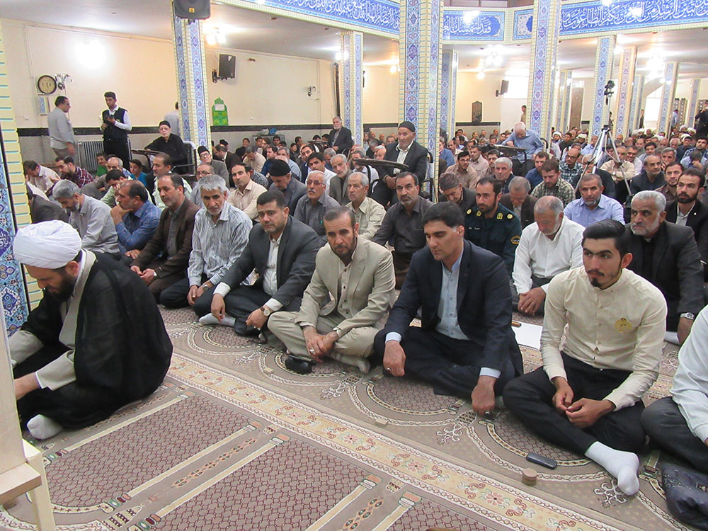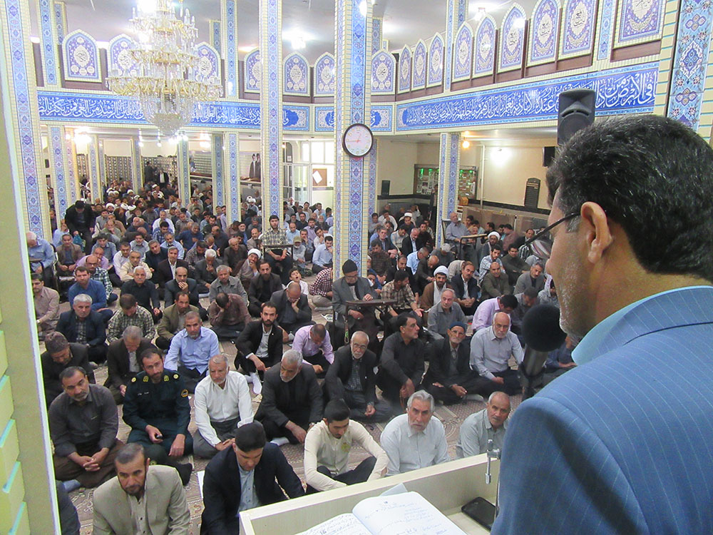 تصاویر نماز آخرین جمعه ماه مبارک رمضان و سخنرانی فرماندار در پیش از خطبه ها