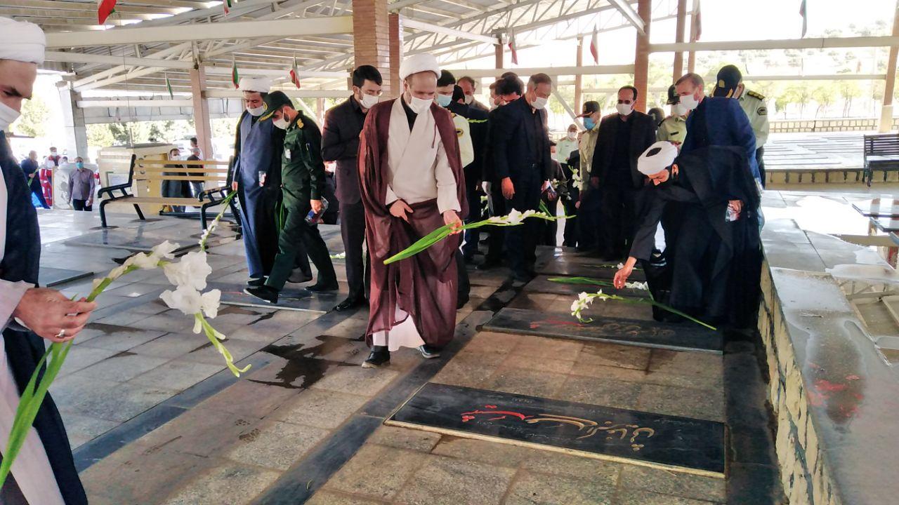 حاضرین در این مراسم با نثار شاخه های گل و قرائت فاتحه نسبت به مقام شامخ شهدای والامقام ادای احترام کردند.
