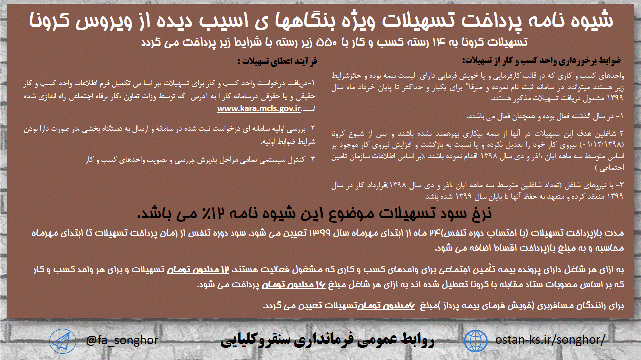 شیوه نامه پرداخت تسهیلات ویژه بنگاه های آسیب دیده از ویروس کرونا