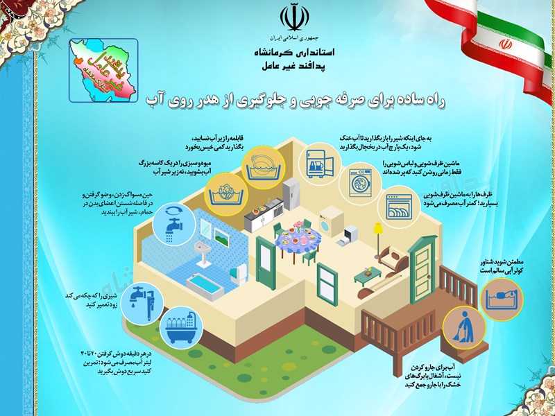 53-در صورت ذخیره آب در مواقع قطع احتمالی و جیره بندی آب، آب های ذخیره شده را پس از وصل مجدد آب، دور نریخته و بصورت متناسب استفاده نمایید.