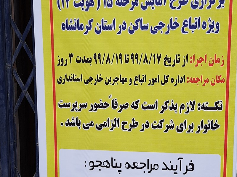 به اطلاع اتباع ساکن در استان کرمانشاه می رساند :
